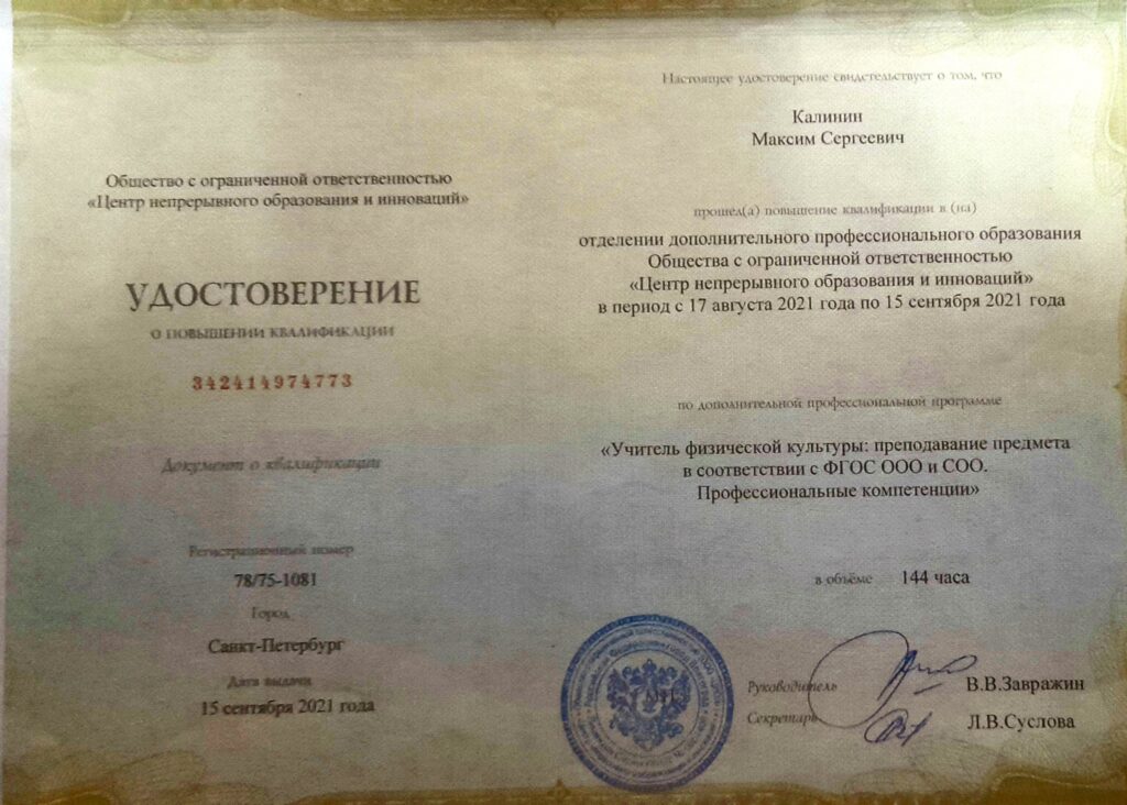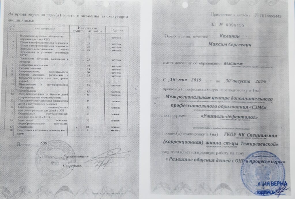 Результаты повышения квалификации по профилю деятельности педагогического работника